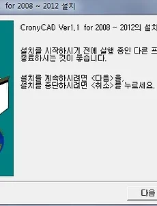 전체 글127 CronyCAD 2012년 9월 2일자 이 프로그램은 인증코드를 발급받은 사용자에 한하여 사용을 하실수 있습니다. - 인증코드발급은 Product Key 인증코드 발급 게시물을 참조하세요 Windows 32bit 64bit 겸용이며 Autocad 2008~2012에서 정상적으로 작동하며 LT버젼에서는 구동이 안됩니다. 자동설치 인증코드가 없는 일반 유저는 2012년 12월 31일까지 무료로 사용하실수 있으며일부 기능은 제한되어 있습니다. 2012. 9. 2. 여러객체 선택시 리턴순서 정하기 - Sort AutoCAD에서 여러개의 객체선택시 리턴이 되는 순서 정하는 것이 필요합니다.리습의 sort함수를 사용하여 정리한 것으로 대부분 4번 옵션으로 작성이 되었습니다.출력등 여러객체를 사용하는 응답이 되는 순서가 필요할때 사용이 되고 있습니다. 2012. 8. 21. 자동설치가 안되거나 설정값이 저장이 안될 경우 CronyCAD는 자동으로 설치가 되며 사용자가 설정하는 값이 저장이 되어 다음에 사용될때 따로 값을 입력하지 않아도 됩니다. 만약 자동으로 설치가 안되거나 설정값들이 저장이 안되며 혹은 사용 권한이 필요합니다라는 메세지가 나온다면 사용자 계정 컨트롤에 대한 조정이 필요합니다. 설치하기전에 아래의 해결방법중 하나를 적용후에 설치를 권장합니다. 해결방법1. 사용자 계정 컨트롤를 비활성화 시켜서 사용하는 방법 2. AutoCAD폴더에 쓰기권한을 부여하는 방법 3. AutoCAD를 메인루터에 설치하는 방법 사용자 계정 컨트롤이란사용자 계정 컨트롤(UAC : User Account Comtrol)은 Windows Vista부터 생긴 보안 기술입니다. 사용중인 계정이 관리자 관리자 권한을 가지더라도 Windows.. 2012. 8. 20. 리습의 공개원칙 왜 FAS파일인가? 리습의 소스는 공개를 하지 않습니다.단 사용을 할수 있게 자료를 공유하기 위해서 FAS형태로 자료가 배포됩니다.블로그에 공개된 리습으로 공부하시는 자료로 충분하다 판단이 됩니다.소스공개는 사양합니다. 왜 인증키가 필요한가? 안면이 있는 유저에게만 배포를 합니다.오프라인에서 얼굴이라도 한번 보고 지내면 더 좋을것 같습니다. 컴파일된 자료의 위험성? 충분히 믿을 수있는 사람의 자료를 사용하시기를 바랍니다.리습도 하나의 프로그래밍 언어입니다.컴파일된 리습이 실행이 되는 순간 무슨일이 일어날지 모릅니다.꼭 믿을수 있는 사람의 컴파일된 리습을 사용하시기 바랍니다. 2012. 8. 16. 이전 1 ··· 15 16 17 18 19 20 21 ··· 32 다음